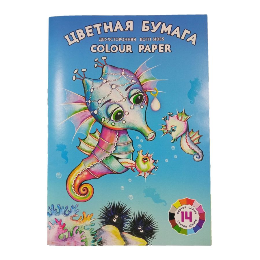 Бумага цветная А4 14л 14цв двухсторонняя Морские коньки скрепка ЛИЛИЯ ХОЛДИНГ ЦБ-8776