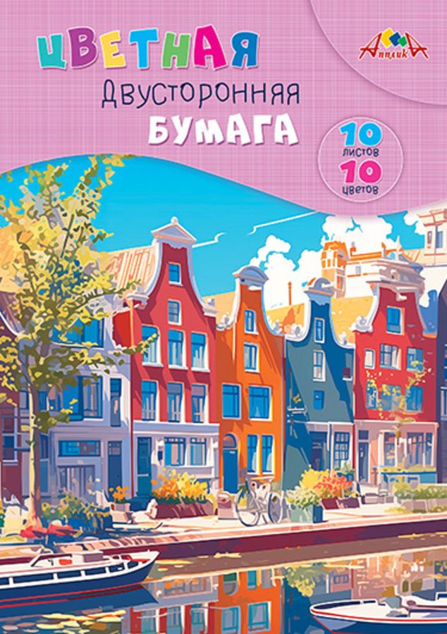 Бумага цветная А4 10л 10цв двусторонняя Набережная АППЛИКА С0277-02