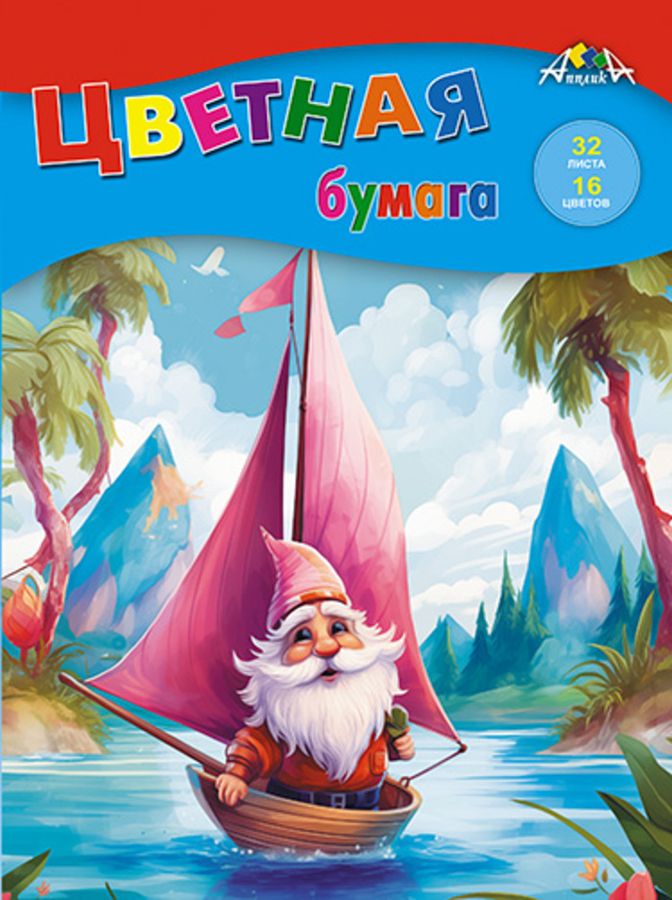 Бумага цветная А4 32л 16цв газетная Гномик скрепка 50г/м2 АППЛИКА С2765-18