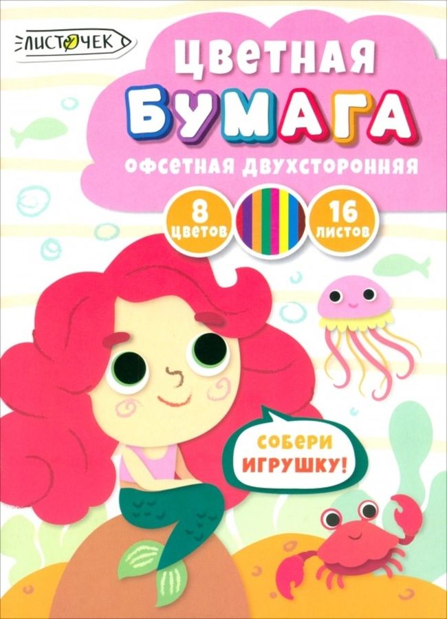Набор двухсторонней цветной бумаги из 16 листов от компании “Эксмо” отличается качественным наполнением: 16 листов офсетной бумаги в стандартной цветовой гамме, которые отлично сгибаются и не оставляют заломов, хорошо прокрашены, имеют яркие и насыщенные цвета, а на упаковке привлекательные иллюстрации. На обороте набора содержится занимательная игра «Собери игрушку» (фигура для вырезания и склеивания), которая делает набор развивающей продукцией для детей. Работа с бумагой – это самый эффективный и недорогой способ развить у ребенка воображение, сформировать правильное цветовосприятие и мелкую моторику, о важности которой не перестают твердить школьные педагоги и психологи.Количество цветов: 8. Крепление: скрепка.