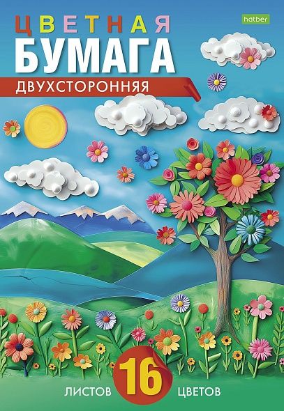 Бумага цветная А4 16л 16цв газетная двустороняя На солнечной полянке ECO скрепка HATBER 16Бц4_32513