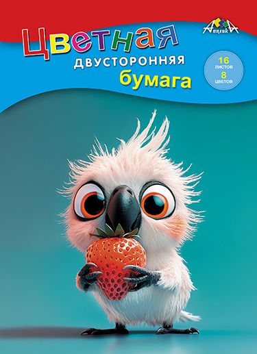 Бумага цветная А4 16л 8цв газетная двусторонняя Попугайчик скрепка 50г/м2 АППЛИКА С0235-43