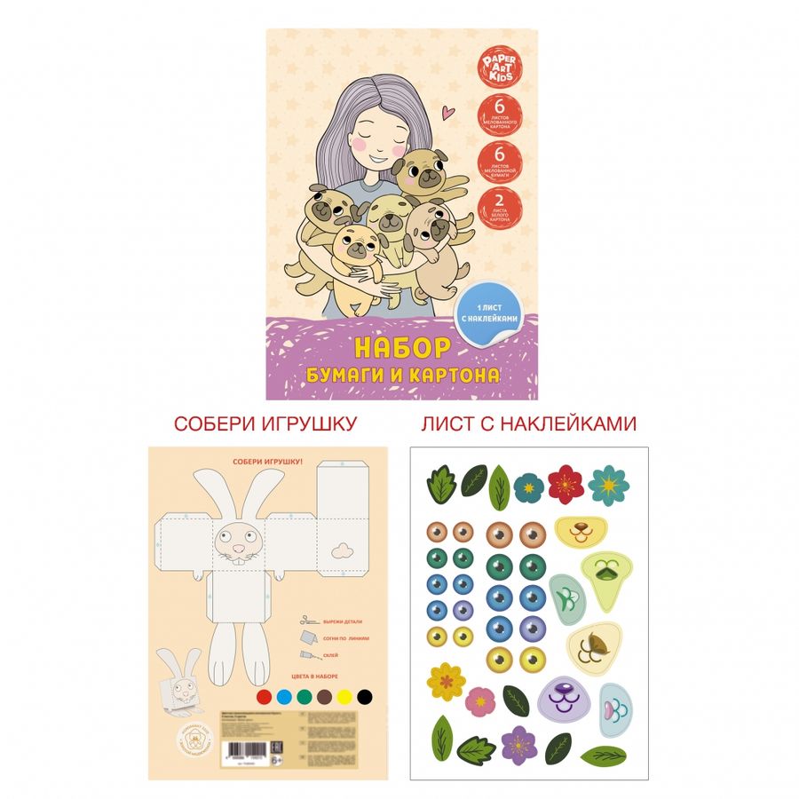 Картон цвет. А4 6л+картон бел.2л+цв.бумага 6л мелов. Девочка со щенками КАНЦ-ЭКСМО НТМ2661503