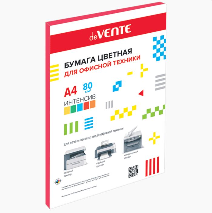 Бумага цветная для офисной техники "deVENTE. Intensive" A4 50 л, 80 г/м², интенсив красный, картонная подложка, в термоусадочной пленке.
