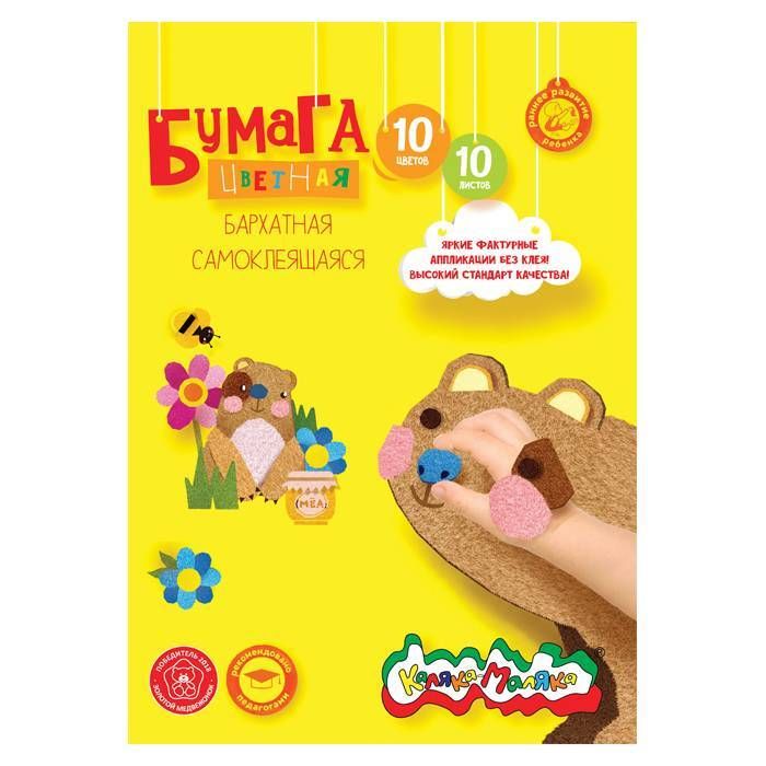 Бархатная самоклеящаяся бумага Каляка-Маляка® - это замечательная альтернатива обычной бархатной бумаге. При работе с ней не требуется клей, поэтому рабочее место маленького художника останется чистым.Пользоваться бумагой очень просто: после вырезания фигурки достаточно снять защитный слой - и можно закрепить ее на любой поверхности. Бумага представлена следующими цветами: красный, розовый, голубой, черный, синий, коричневый, белый, желтый, оранжевый, зеленый. Бумага легко режется ножницами. Легко отделяется от клеевого слоя и крепится к любой поверхности. Яркие сочные цвета вдохновляют на творчество! Плотность бумаги 110 г/м2.