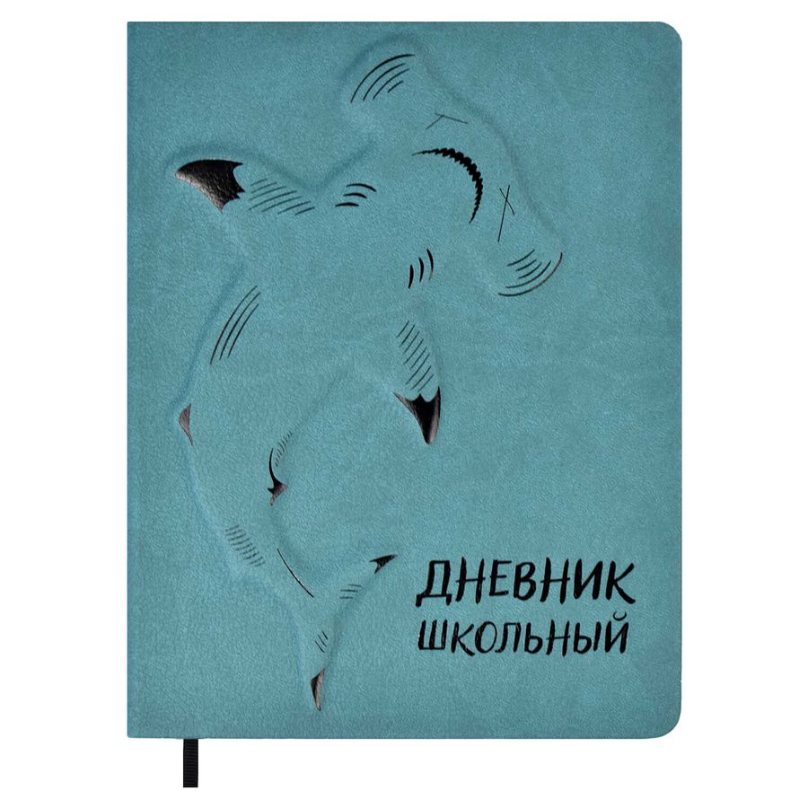 Дневник школьный арт. 53620 / 15 АКУЛА (кожзам, твёрдый переплёт, А5+, 48 л., 3D-дизайн, тиснение фольгой, одно ляссе, универсальная шпаргалка, ПЭТ-пакет)