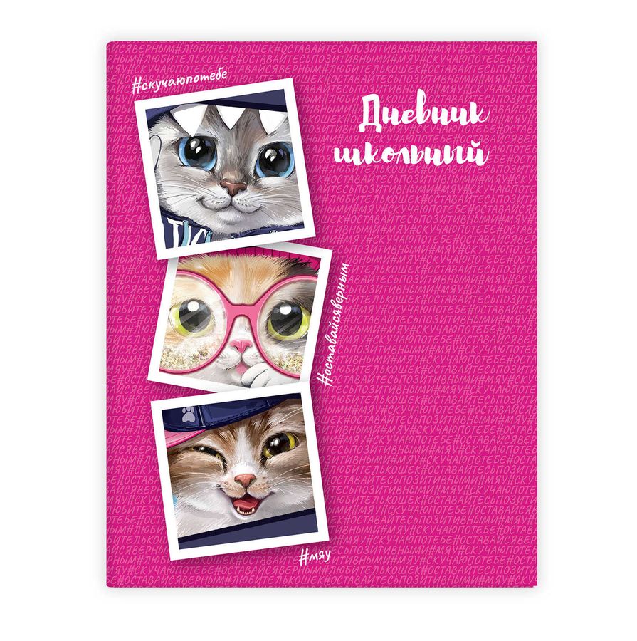 Дневник школьный арт. 63325 КОТЫ / интегральный переплёт, А5+, 48 л., глянцевая ламинация, печать в одну краску, универсальная шпаргалка/