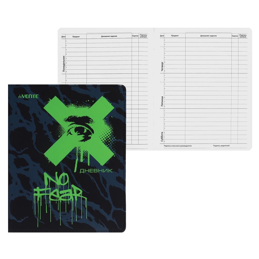 Дневник "deVENTE. Red Label. The X No Fear" универсальный блок, 48 листов, белая бумага 80 г/м², печать в 1 краску, гибкая обложка из искусственной кожи, шелкография, отстрочка, 1 ляссе