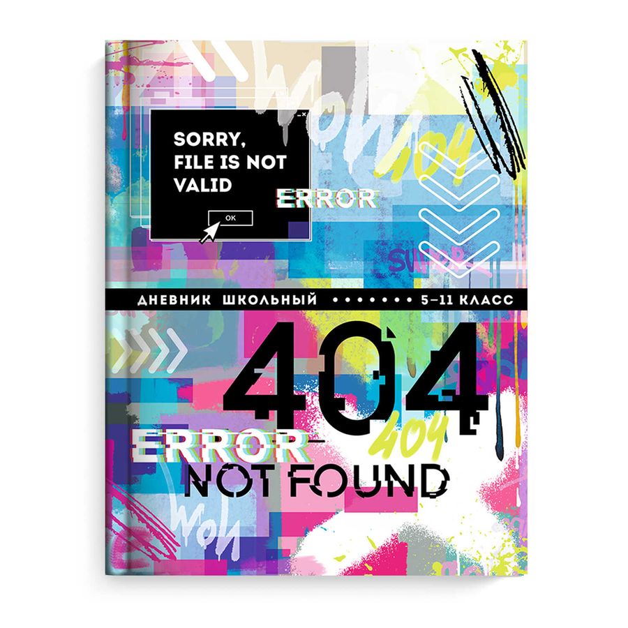 Дневник школьный 5-11 класс арт. 63282 ОШИБКА 404 / твёрдый переплёт 7БЦ, А5+, 48 л., печать по фольге, глянцевая ламинация, печать в одну краску, шпаргалка для старших классов/