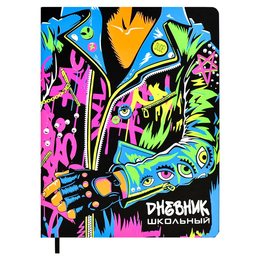 Дневник школьный арт. 62246 / 15 КОСУХА (кожзам: А5+; мягкий переплёт, материал обложки: искусственная кожа "Виннер"; Декор: полноцветная неоновая печать; Способ крепления блока: ниткошвейный; вн. блок: 48 л., белый офсет 80 г/м², печать в одну краску, Фправочный материал: универсальная шпаргалка; Закладка: одно ляссе; Форзац: печать в одну краску; Особенности: запаянный край; индивидуальная упаковка: ПЭТ-пакет)