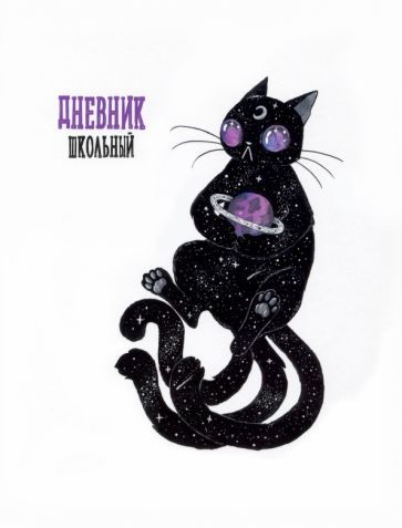 Дневник школьный 7БЦ арт.110004 КОСМИЧЕСКИЙ КОТ (А5+, 48л, твердый переплет 7БЦ, выборочный УФ-лак, полноцветная печать, матовая пленка, внутр.блок - белый офсет, печать в одну краску, универсал.шпаргалка)