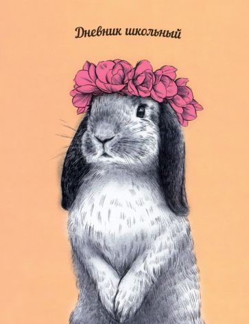 Дневник школьный 7БЦ арт.110025 КРОЛИК С ВЕНКОМ (А5+, 48л, твердый переплет 7БЦ, полноцветная печать, глянцевая пленка, внутр.блок - белый офсет, печать в одну краску, универсал.шпаргалка)