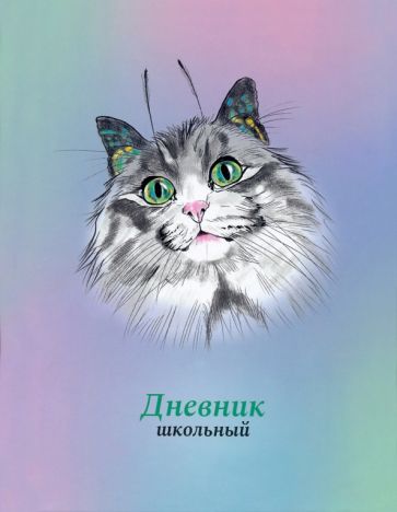 Дневник школьный 7БЦ арт.110028 КОШКА-БАБОЧКА1 (А5+, 48л, твердый переплет 7БЦ, полноцветная печать, глянцевая пленка, внутр.блок - белый офсет, печать в одну краску, универсал.шпаргалка)