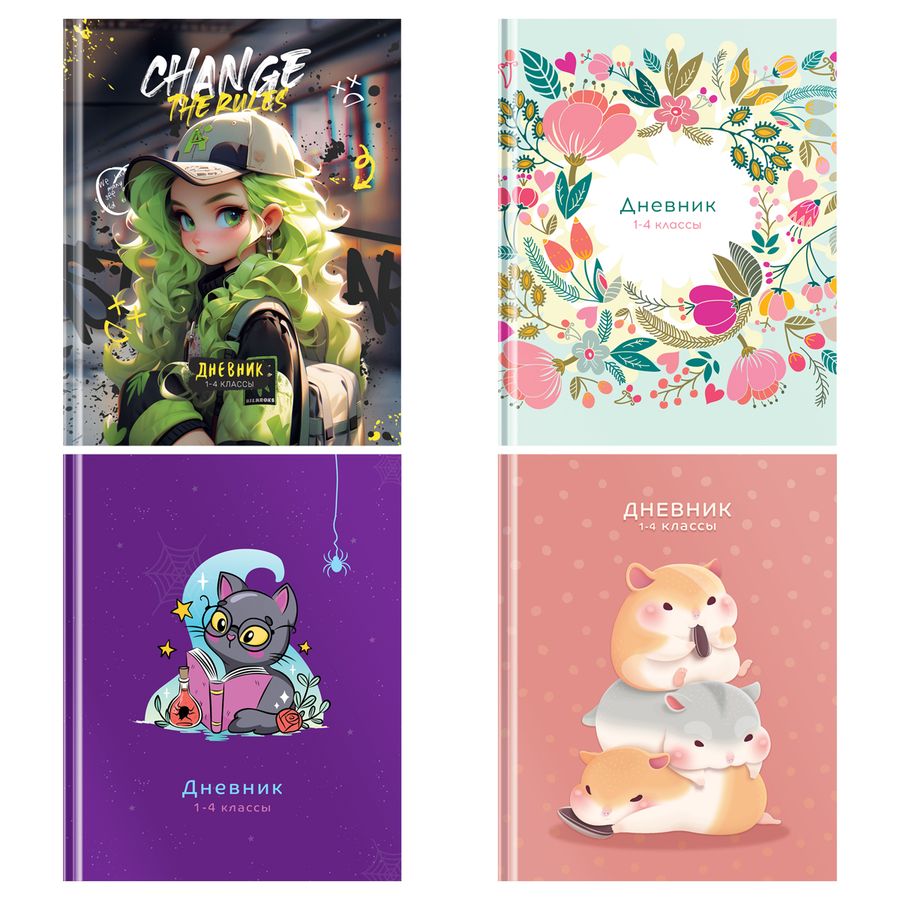 Дневник для младших классов со справочной информацией. Блок внутренний -офсет белый 100% белизны, плотностью 60 г/м2, печать в 1 краску (черный цвет). Обложка - твердый переплет (7БЦ) с глянцевой ламинацией. На форзацах дневника есть справочная информация (дорожные знаки, правила перехода проезжей части, пожарная безопасность, взаимоотношения с людьми)