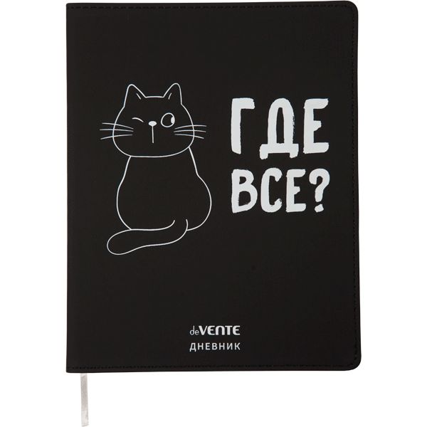 Дневник "deVENTE. Где все?" универсальный блок, 48 листов, белая бумага 80 г/м², печать в 1 краску, гибкая обложка из искусственной кожи, шелкография, отстрочка, 1 ляссе.