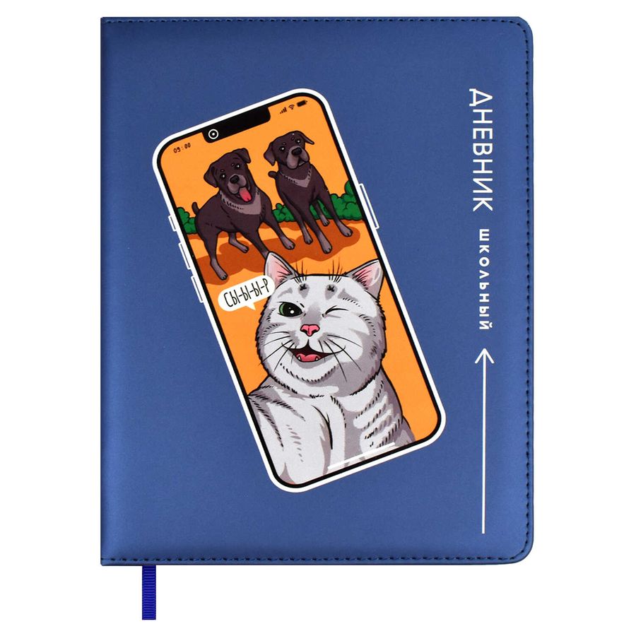 Дневник школьный арт. 66410 / 15 СЭЛФИ (кожзам: А5+; твёрдый переплёт с поролоном, материал обложки: искусственная кожа "Софт-тач металлик"; декор: высокий УФ-лак; способ крепления блока: ниткошвейный; вн. блок: 48 л., белый офсет 80 г/м², печать в одну краску, справочный материал: универсальная шпаргалка; отделка среза: окрашивание пантоном; закладка: одно ляссе; форзац: печать пантоном; индивидуальная упаковка: ПЭТ-пакет)