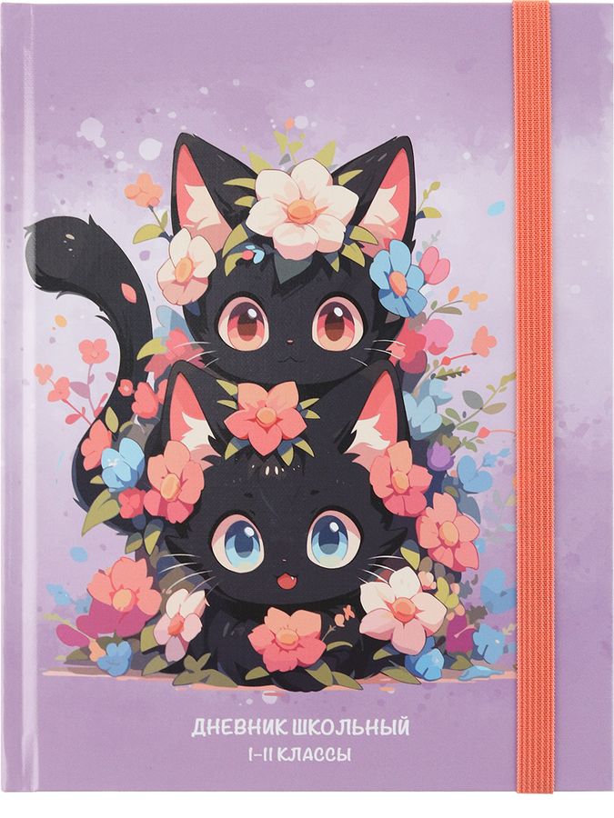 Дневник универсальный тв.обл. Котики в цветах глянц.лам. с резинкой PROF-PRESS Д40-3413