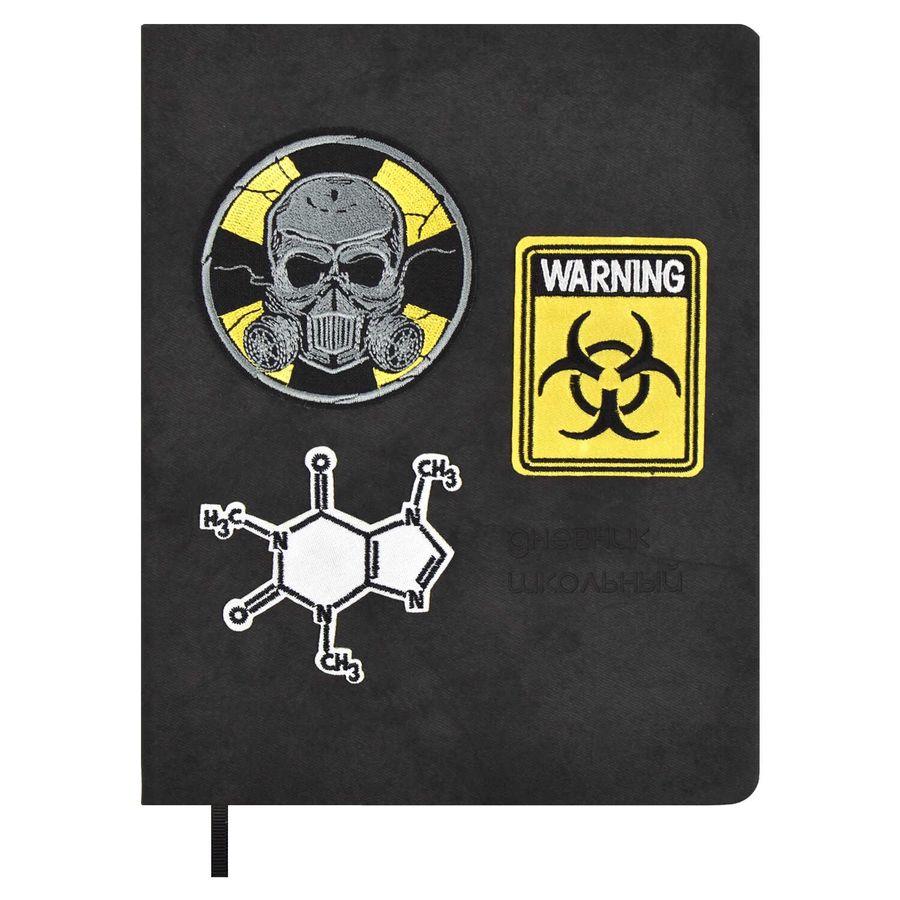 Дневник школьный арт. 66449 / 15 БЭД БОЙ (кожзам: А5+; твёрдый переплёт, материал обложки: искусственная кожа "Джинс"; декор: блинтовое тиснение, патчи текстильные полноцветные; способ крепления блока: ниткошвейный; вн. блок: 48 л., белый офсет 80 г/м², печать в одну краску, справочный материал: универсальная шпаргалка; отделка среза: окрашивание пантоном; закладка: одно ляссе; форзац: печать пантоном; индивидуальная упаковка: ПЭТ-пакет)