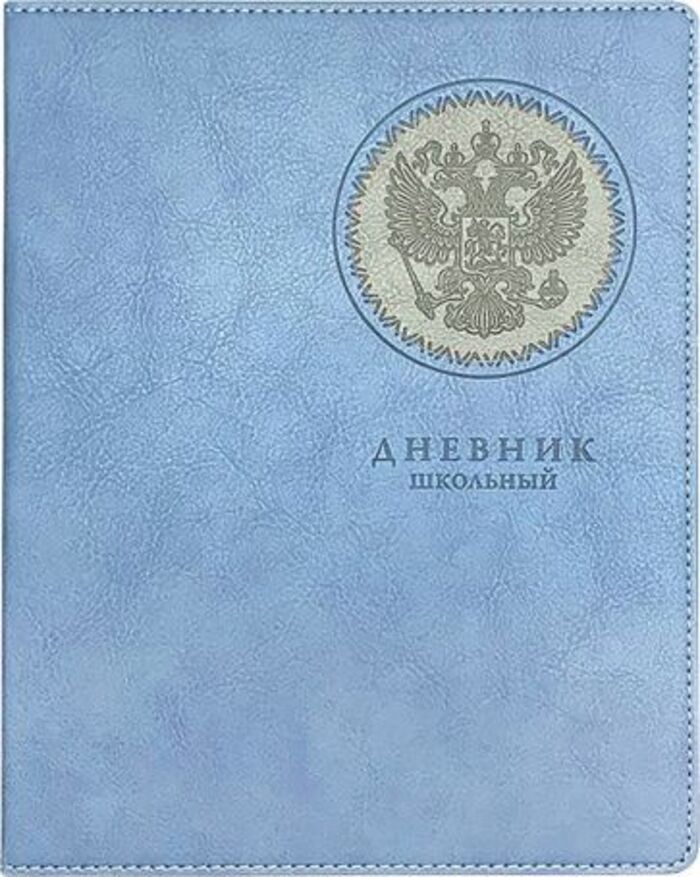 Дневник школьный арт.110061 ГЕРБ голубой(искусственная кожа, твердый переплет, А5+, 48л, сочетание двух материалов, блинтовое тиснение, ляссе, универсальная шпаргалка)