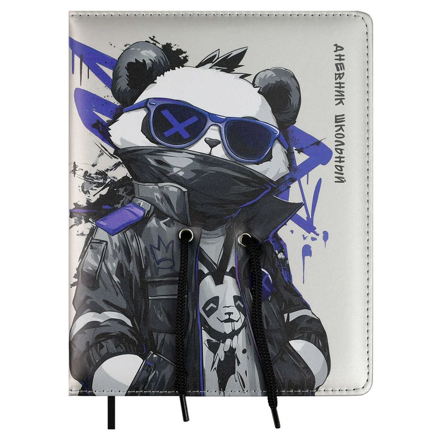 Дневник школьный арт. 68686 / 15 КРУТОЙ ПАНДА (кожзам: А5+; твёрдый переплёт с поролоном, материал обложки: искусственная кожа "Софт-тач металлик"; декор: печать полноцветная, шнуровка в люверсах декоративная; способ крепления блока: ниткошвейный; вн. блок: 48 л., белый офсет 80 г/м², печать в одну краску, справочный материал: универсальная шпаргалка; закладка: одно ляссе; форзац: печать в одну краску; индивидуальная упаковка: ПЭТ-пакет)