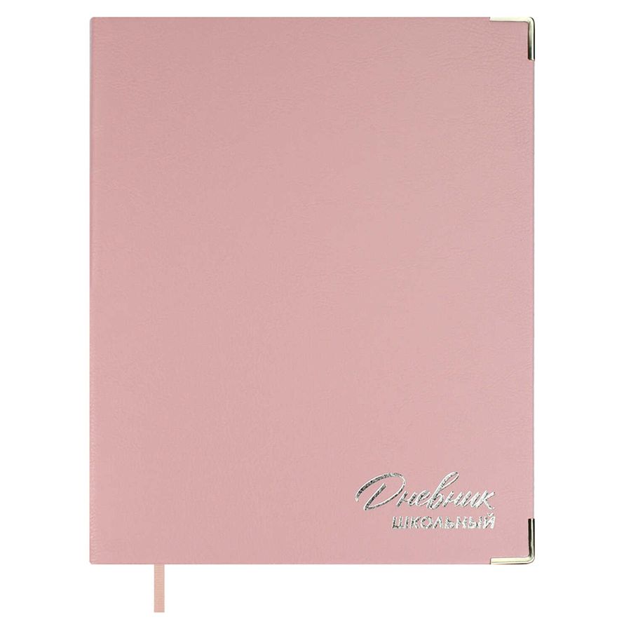 Дневник школьный арт. 68800 / 15 РОЗОВЫЙ (кожзам: А5+; интегральный переплёт, материал обложки: искусственная кожа "Наппа"; декор: тиснение фольгой; способ крепления блока: ниткошвейный; вн. блок: 48 л., белый офсет 80 г/м², печать в одну краску, справочный материал: универсальная шпаргалка; отделка среза: фольгирование; закладка: одно ляссе; форзац: печать пантоном; особенности: металлические уголки; индивидуальная упаковка: ПЭТ-пакет)