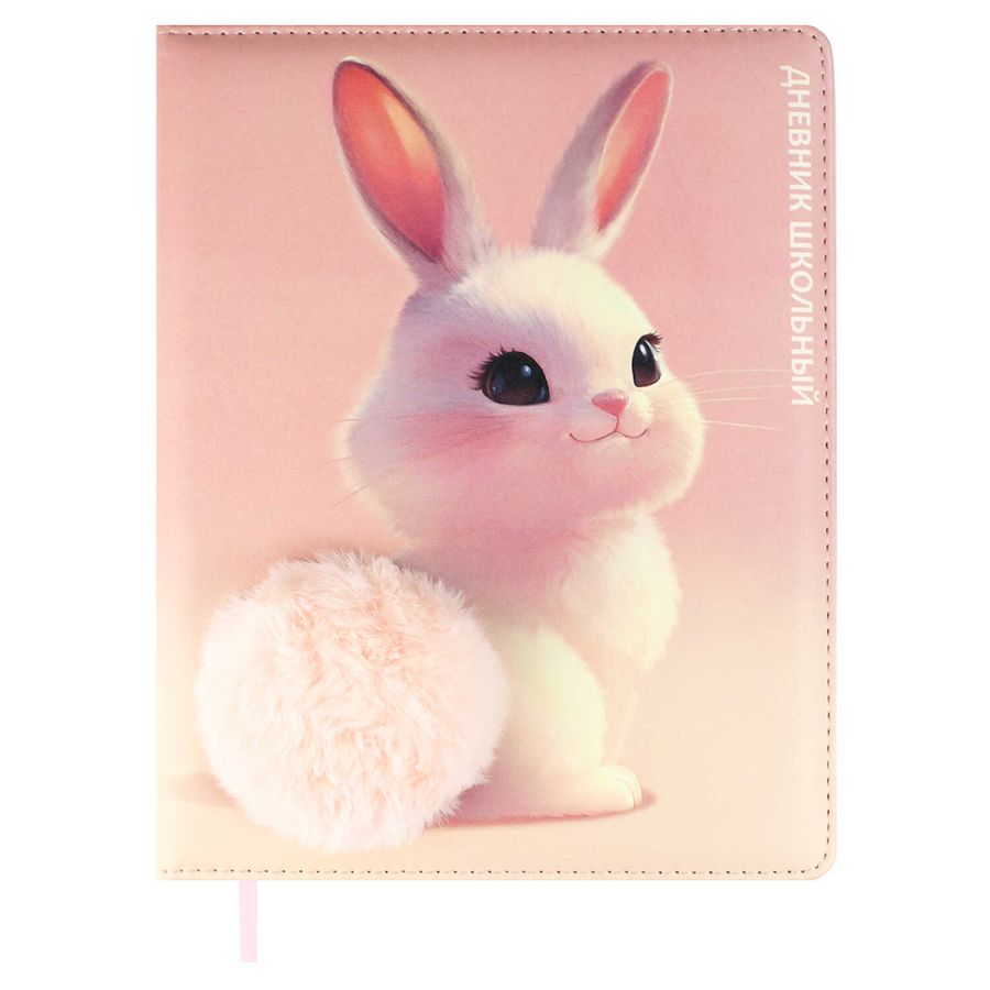 Дневник школьный арт. 69984 / 15 ПУШИСТАЯ ЗАЙКА (кожзам: А5+; твёрдый переплёт с поролоном, материал обложки: искусственная кожа "Пристин"; декор: аппликация из меха, печать полноцветная; способ крепления блока: ниткошвейный; вн. блок: 48 л., белый офсет 80 г/м², печать в одну краску, справочный материал: универсальная шпаргалка; закладка: одно ляссе; форзац: печать в одну краску; индивидуальная упаковка: ПЭТ-пакет)