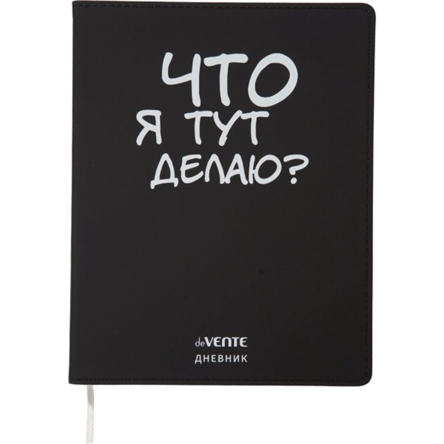 Дневник "deVENTE. Что я тут делаю?" универсальный блок, 48 листов, белая бумага 80 г/м², печать в 1 краску, гибкая обложка из искусственной кожи, шелкография, отстрочка, 1 ляссе