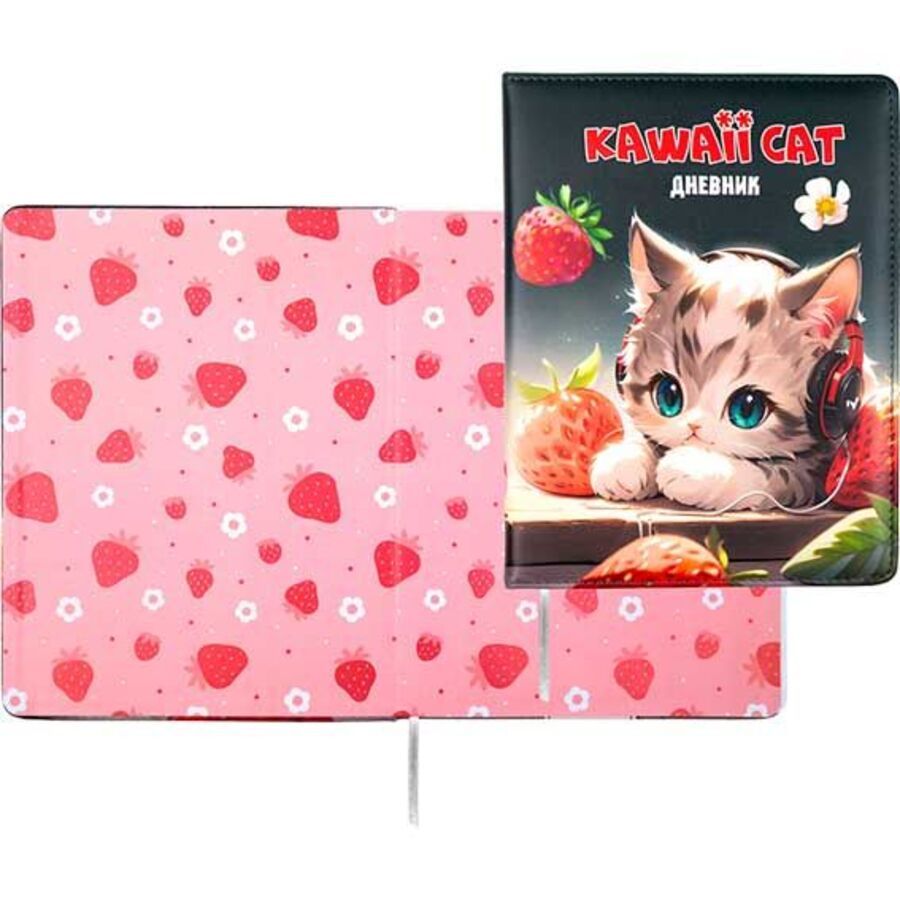 Дневник "Attomex. Kawaii Cat" универсальный блок, 48 листов, белая бумага 80 г/м², печать в 1 краску, твердая обложка из искусственной кожи с поролоном, цветная печать, отстрочка, цветной форзац, 1 ляссе