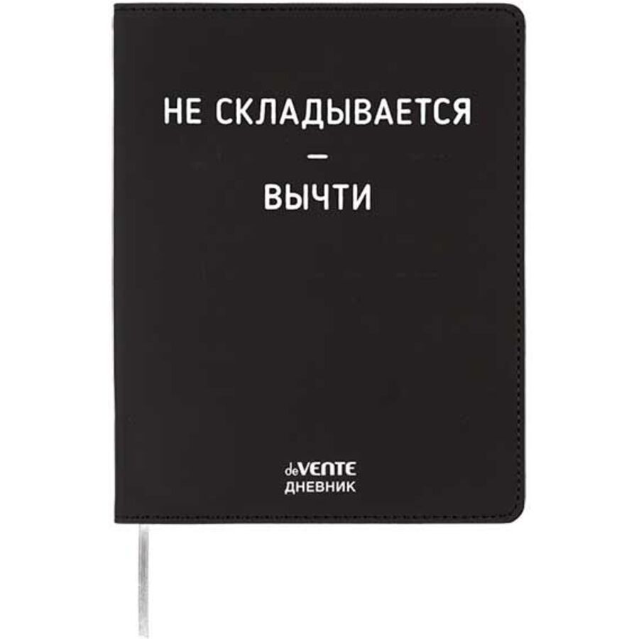 Дневник "deVENTE. Не складывается - вычти" универсальный блок, 48 листов, белая бумага 80 г/м², печать в 1 краску, гибкая обложка из искусственной кожи, шелкография, отстрочка, 1 ляссе