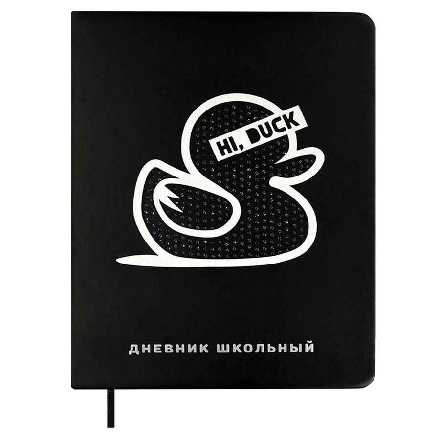 Дневник школьный арт. 68767 / 15 СЕРЕБРЯНЫЙ УТЕНОК (кожзам: А5+; твёрдый переплёт, материал обложки: искусственная кожа "Плонже"; декор: аппликация из резины, аппликация из страз; способ крепления блока: ниткошвейный; вн. блок: 48 л., белый офсет 80 г/м², печать в одну краску, справочный материал: универсальная шпаргалка; отделка среза: фольгирование; закладка: одно ляссе; форзац: печать пантоном; индивидуальная упаковка: ПЭТ-пакет)