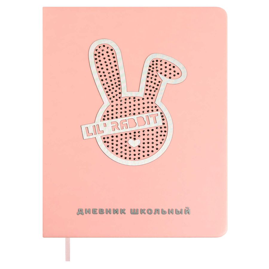 Дневник школьный арт. 68768 / 15 СЕРЕБРЯНЫЙ ЗАЙЧИК (кожзам: А5+; твёрдый переплёт, материал обложки: искусственная кожа "Плонже"; декор: аппликация из резины, аппликация из страз; способ крепления блока: ниткошвейный; вн. блок: 48 л., белый офсет 80 г/м², печать в одну краску, справочный материал: универсальная шпаргалка; отделка среза: фольгирование; закладка: одно ляссе; форзац: печать пантоном; индивидуальная упаковка: ПЭТ-пакет)