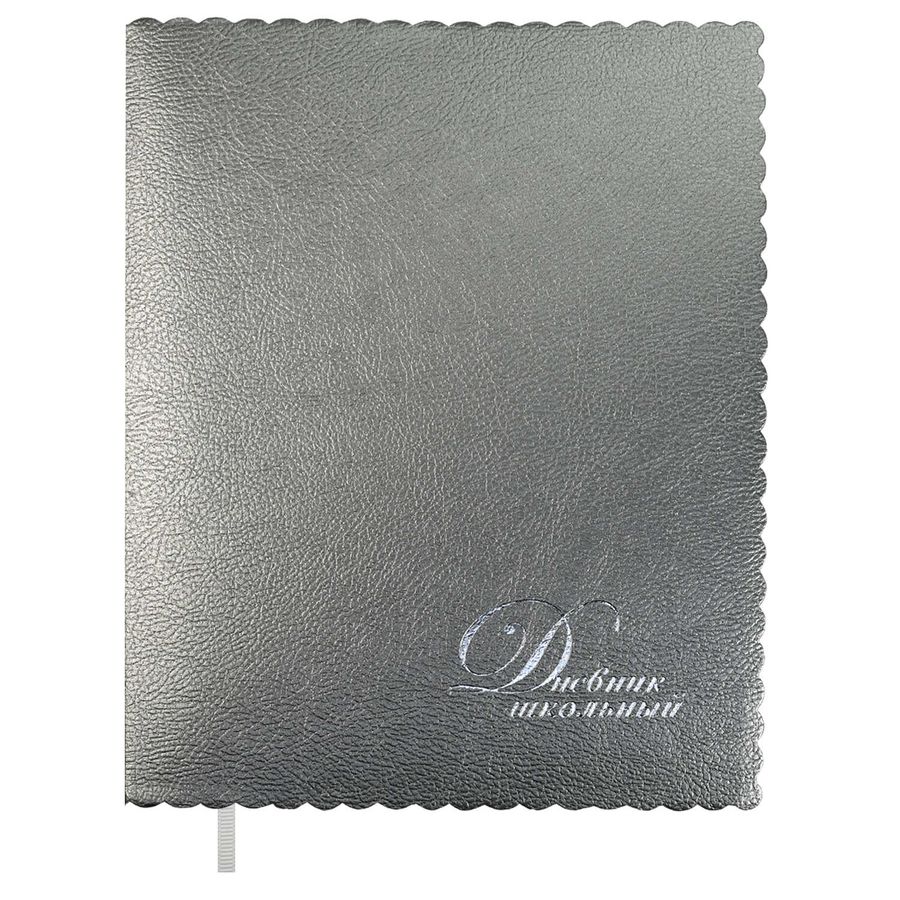 Дневник школьный арт. 68810 / 15 СЕРЫЙ (кожзам: А5+; мягкий переплёт, материал обложки: искусственная кожа "Наппа металлик"; декор: тиснение фольгой, фигурная вырубка по краю; способ крепления блока: ниткошвейный; вн. блок: 48 л., белый офсет 80 г/м², печать в одну краску, справочный материал: универсальная шпаргалка; отделка среза: фольгирование; закладка: одно ляссе; форзац: печать пантоном; индивидуальная упаковка: промостикер + ПЭТ-пакет)