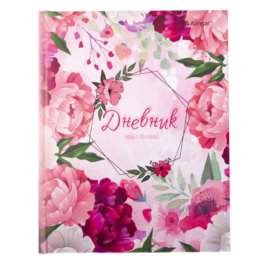 Дневник школьный Alingar 1-11 кл., 40л., 7БЦ, матовая ламинация, выб. УФ лак, 17,0 см. * 21,6 см, "Пионы"