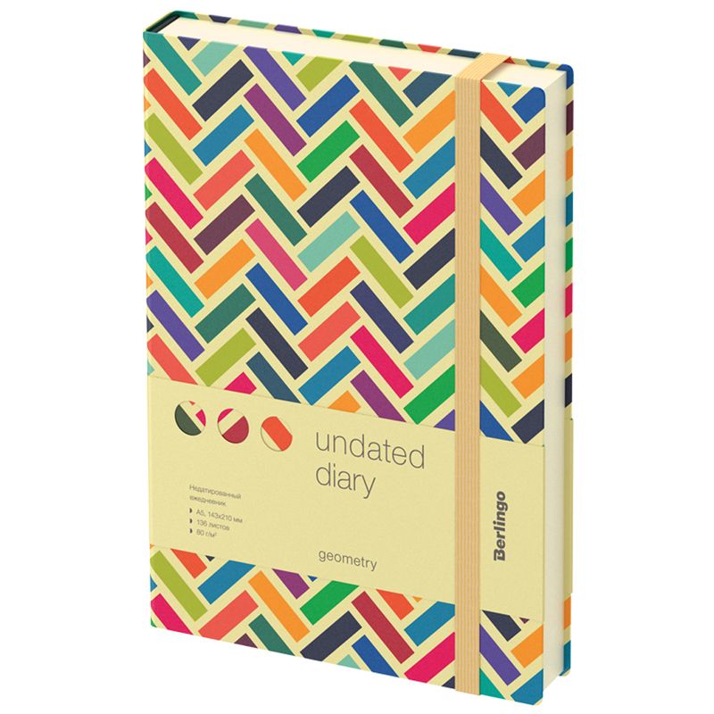 Ежедневники Berlingo Geometry изготовлены из искусственной кожи. Полужесткая обложка с сочетанием контрастных цветов обложки с геометрическим рисунком. Вертикальная фиксирующая резинка. Внутренний блок из 136 листов высококачественной кремовой бумаги повышенной плотности 80 г/м², пантонная печать в 2 краски, справочный материал и перфорированные уголки. Индивидуальная упаковка. Подходят под персонализацию.