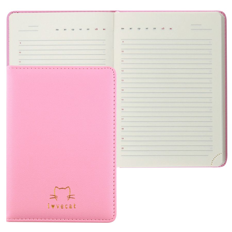 Ежедневник недатированный "deVENTE. I Love Cat!" B6 (120 ммx170 мм) 320 стр, кремовая бумага 70 г/м², печать в 2 краски, твердая обложка из искусственной кожи с поролоном, тиснение фольгой, отстрочка, перфорация, закругленные уголки, 2 ляссе, в термоусадочной пленке, розовый