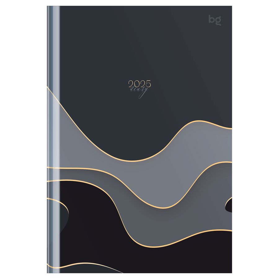 Датированный ежедневник BG "Волны на черном" формата А5 (145*205 мм) является незаменимым помощником в планировании и стильным бизнес-аксессуаром. Твёрдая обложка (7БЦ) выполнена из картона с отделкой матовой ламинацией и тиснением фольгой. Внутренний блок в линию состоит из 176 листов офсетной белой бумаги плотностью 60 г/м2 с печатью в 1 краску. Благодаря прошитому блоку ежедневник надолго сохранит первоначальный внешний вид. Внутри есть полезный справочный материал. Изделие имеет оригинальный минималистичный дизайн. • Вид товара: ежедневник датированный; • Формат: А5; • Размер: 145*205 мм; • Количество листов: 176; • Материал обложки: картон; • Плотность блока: 60 г/кв.м; • Тип скрепления: сшивка.