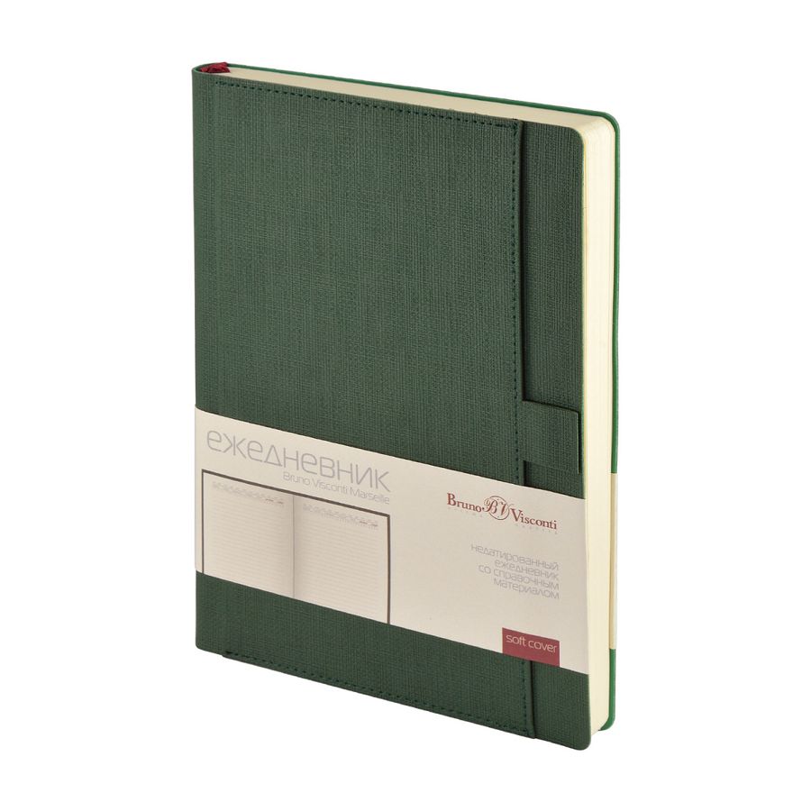 Ежедневник А5 136л недатир. интег.обл. Marseille зеленый кожзам внеш.карман BRUNO VISCONTI 3-215/05