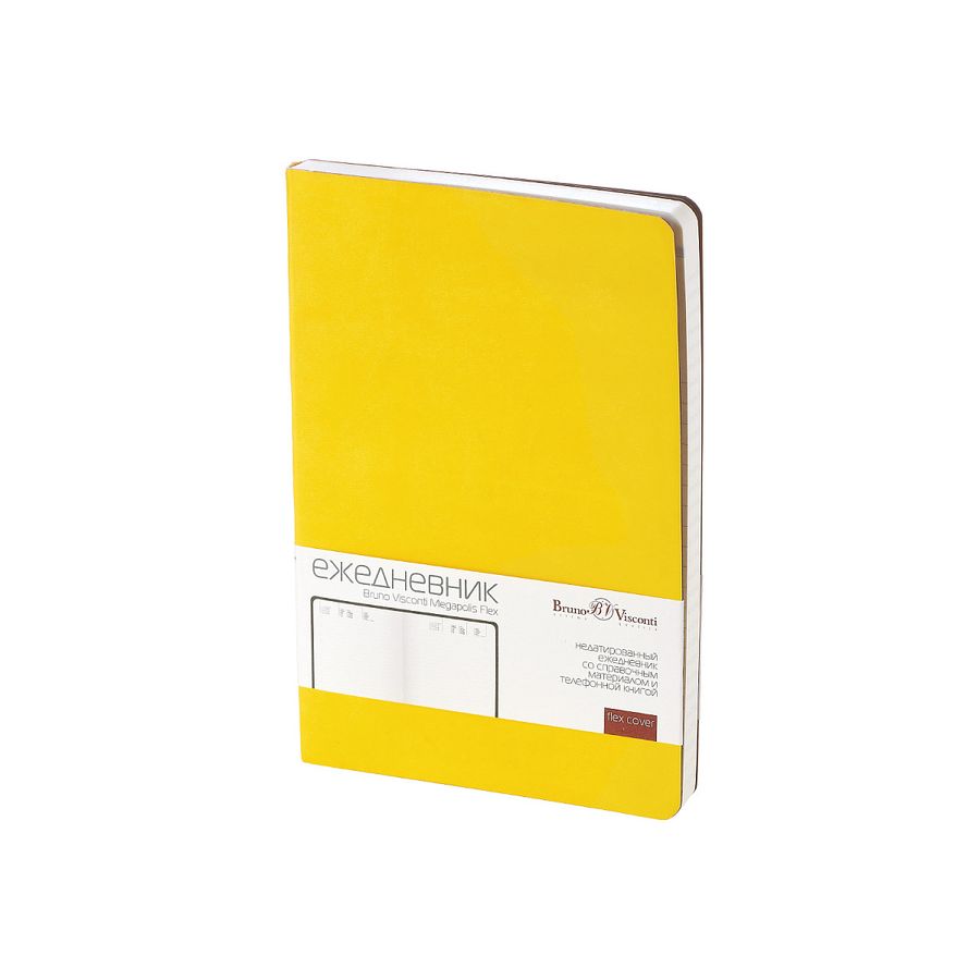 Недатированный ежедневник "MEGAPOLIS FLEX" формата А5 в гибкой (flex) обложке c покрытием Soft touch, с закругленными углами - верх утилитарности и одновременно икона стиля. Ничего лишнего, ни одной необоснованной детали, и при этом сколько элегантности! Переплётный материал подходит для любого вида тиснения, гибкая обложка позволяет носить ежедневник и в портфеле, и в маленькой сумке. Блок — один из лучших образцов минимализма, тонированная бежевая бумага плотностью 70 г/кв.м. Ежедневник содержит страничку для личных данных справочную информацию. Блок для записей разлинован с временным интервалом в один час.