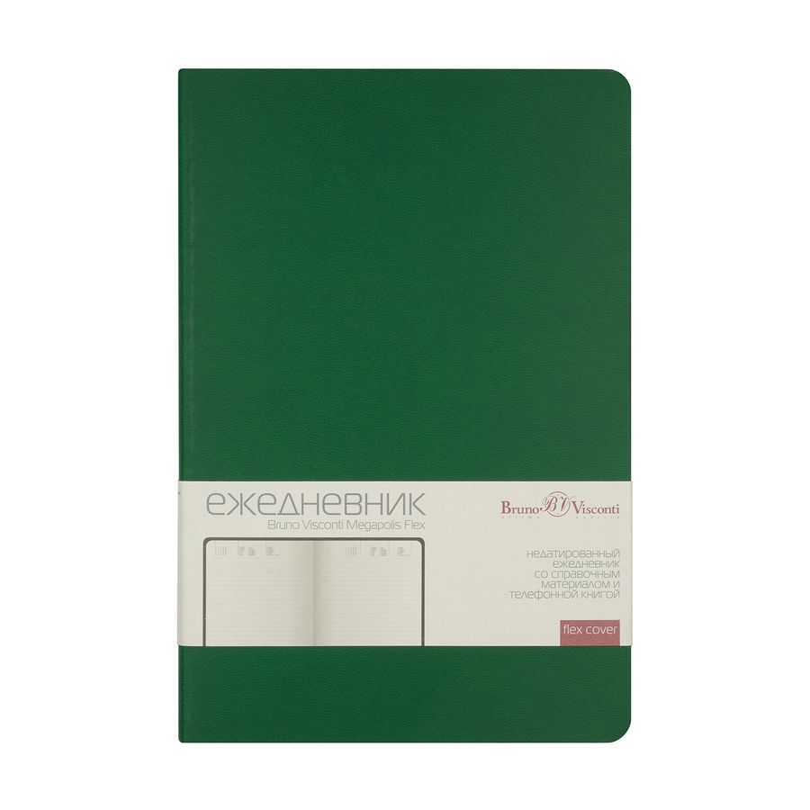Ежедневник А5- 136л недатир. интег.обл. Megapolis Flex темно-зеленый кожзам BRUNO VISCONTI 3-531/24
