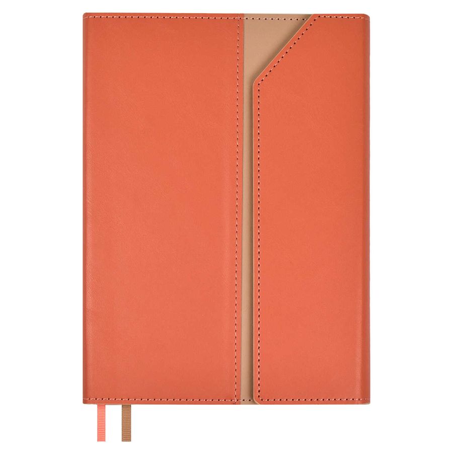 Ежедневник недатированный ESCALADA, А5, 160 л., арт. 67212/ 15 КАВЕТТИ КОРАЛЛОВЫЙ (кожзам: 150x211 мм, твёрдый переплёт, запаянный край, материал обложки: искусственная кожа "Каветти"; способ крепления блока: ниткошвейный; декор: отделочная строчка; вн. блок: 160 л., кремовый офсет 70 г/м², печать в одну краску (линия), справочный материал: есть; перфорация углов блока: нет; закладка/-и: два ляссе, каптал: есть; форзац: печать пантоном, особенности: магнитный клапан; персонализация возможна: да; индивидуальная упаковка: ПЭТ-пакет)