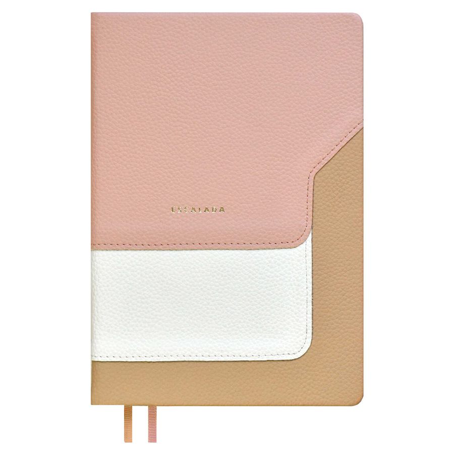 Ежедневник недатированный ESCALADA, А5, 160 л., арт. 67221/ 15 ЛАЙКА ПЕПЕЛЬНО-КОРАЛЛОВАЯ (кожзам: 146х211 мм, запаянный край, твёрдый переплёт с поролоном, материал обложки: искусственная кожа "Лайка"; способ крепления блока: ниткошвейный; декор: отделочная строчка, тиснение фольгой; вн. блок: 160 л., кремовый офсет 70 г/м², печать в одну краску (линия), справочный материал: есть; перфорация углов блока: нет; отделка среза: окрашивание пантоном; закладка/-и: два ляссе, каптал: есть; форзац: печать пантоном, особенности: комбинированные материалы; персонализация возможна: нет; индивидуальная упаковка: ПЭТ-пакет)