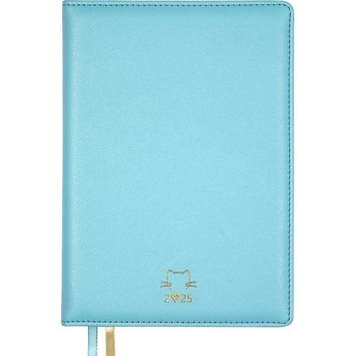 Ежедневник датированный 2025 "deVENTE. I Love Cat!" A5 (145 ммx205 мм) 336 стр, кремовая бумага 70 г/м², печать в 2 краски, твердая обложка из искусственной кожи с поролоном, тиснение фольгой, отстрочка, перфорация, закругленные уголки, 2 ляссе, в термоусадочной пленке, голубой