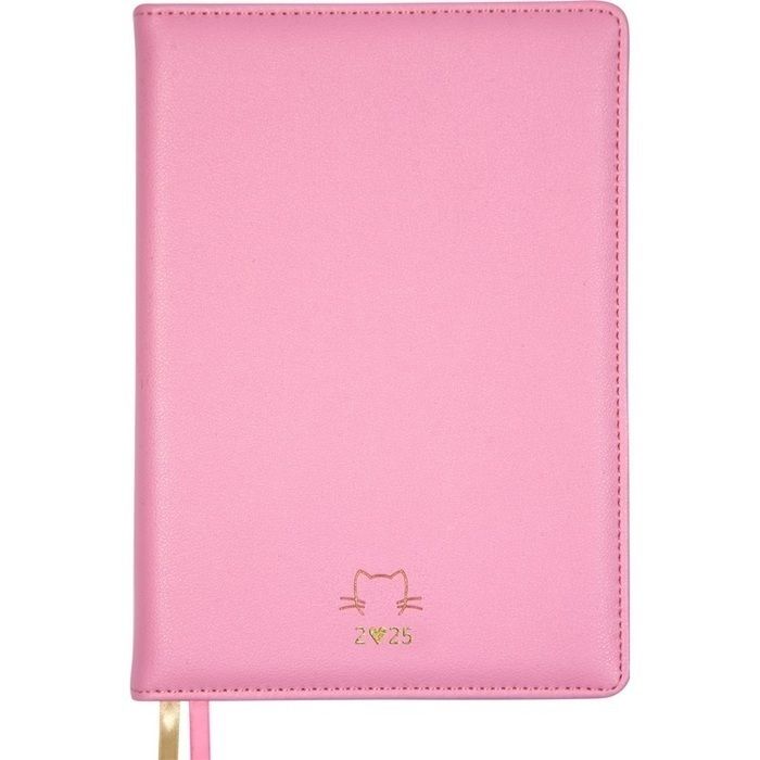 Ежедневник датированный 2025 "deVENTE. I Love Cat!" A5 (145 ммx205 мм) 336 стр, кремовая бумага 70 г/м², печать в 2 краски, твердая обложка из искусственной кожи с поролоном, тиснение фольгой, отстрочка, перфорация, закругленные уголки, 2 ляссе, в термоусадочной пленке, розовый