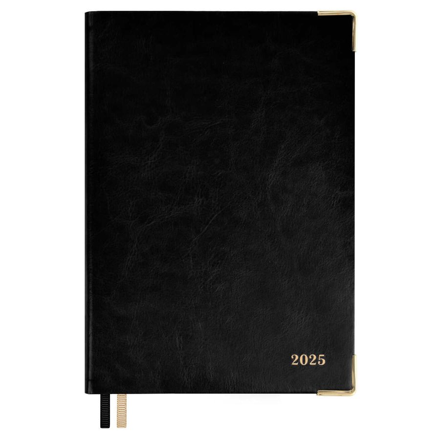 Ежедневник А5 176л датир. 2025г интег.обл. ИЛОН МАСК Сариф черный кожзам 2 ляссе ESCALADA 66996