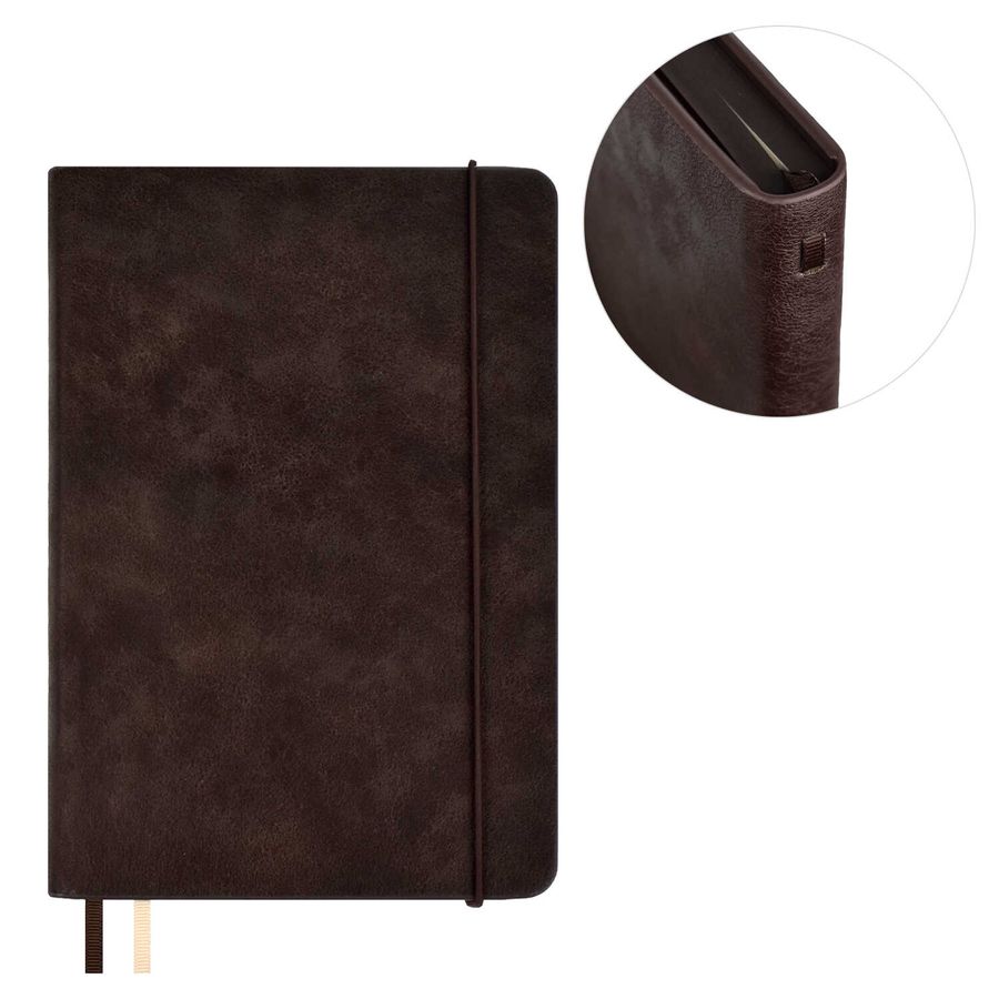 Ежедневник недатированный ESCALADA, А5, 160 л., арт. 67239/ 15 ГРАНИССО ТЁМНО-КОРИЧНЕВЫЙ (кожзам: 146x211 мм, твёрдый переплёт, материал обложки: искусственная кожа "Граниссо"; способ крепления блока: ниткошвейный; вн. блок: 160 л., тонированный офсет 70 г/м², печать в две краски (линия), справочный материал: есть; перфорация углов блока: нет; отделка среза: окрашивание пантоном; закладка/-и: два ляссе, каптал: есть; форзац: печать пантоном, особенности: застёжка-резинка, карман на форзаце; персонализация возможна: да; индивидуальная упаковка: промостикер + ПЭТ-пакет)
