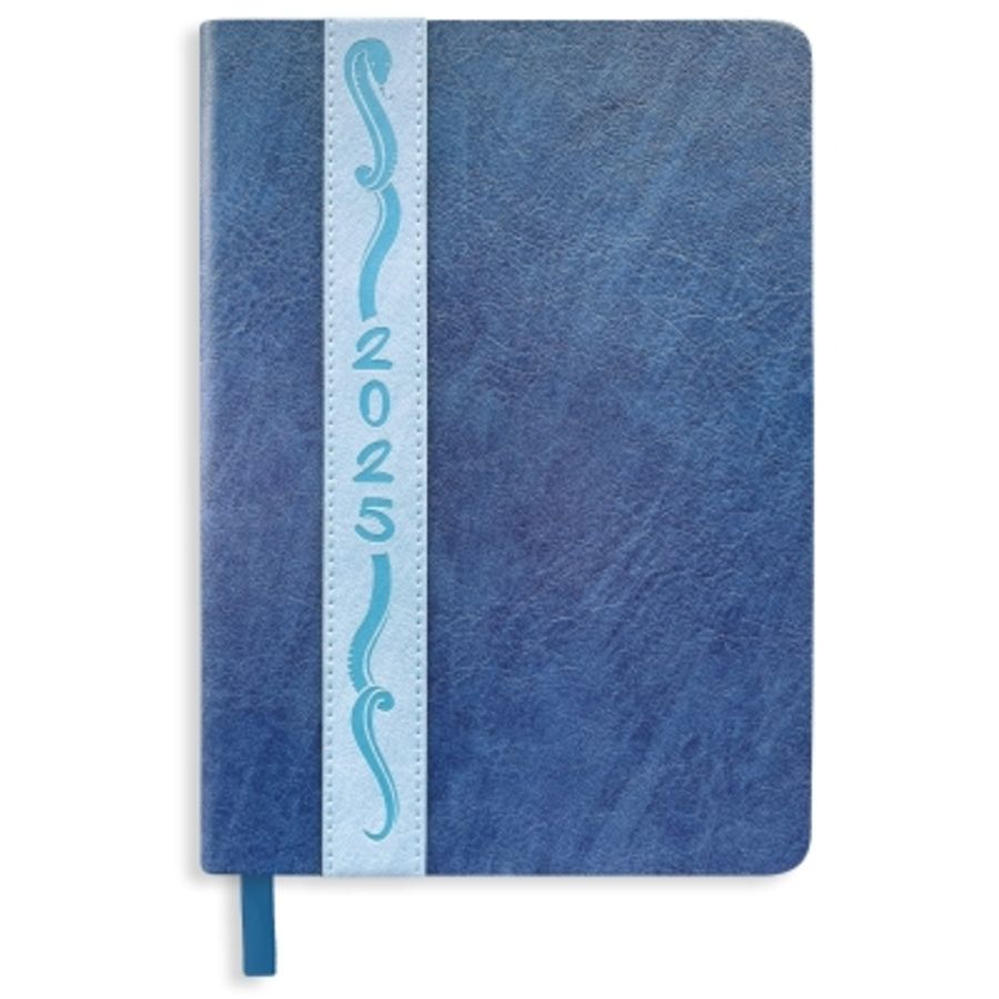 Ежедневник 2025 А5 148*210мм искуственная кожа " Альфа-Тренд " 176л Марсель синий/голубой, линия, белый офсет 80г/м2, печать в 2 краски, апликация- полоса, блинтовое тиснение, закругленные уголки, подходит под теснение, 1 ляссе, пакет