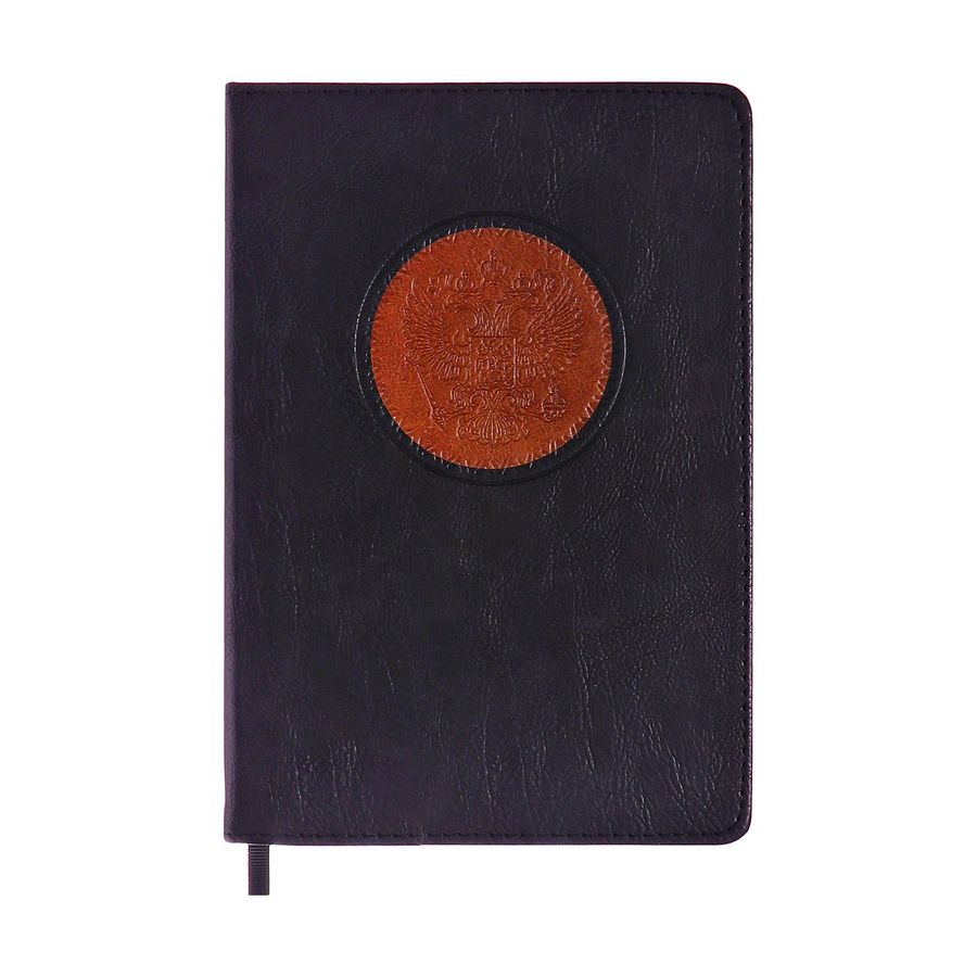 Ежедневник недатированный А5 148*210мм искусственная кожа " Альфа-Тренд " 144л Россия черный/коричневый, линия, белый офсет 80г/м2, печать в 1 краску, отстрочка, закругленные уголки, подходит под нанесение, 1 ляссе, термоусадочная пленка