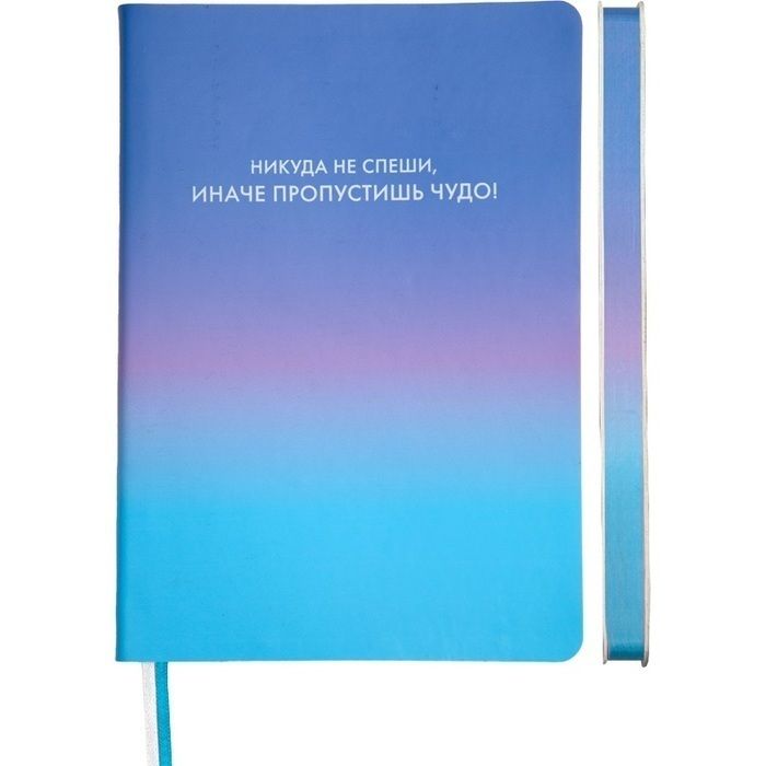 Ежедневник недатированный "deVENTE. Degrade" A5 (145 ммx205 мм) 272 стр, белая бумага 70 г/м² с цветным срезом, печать в 2 краски, мягкая обложка из искусственной кожи, цветная печать, белая шелкография, перфорация, закругленные уголки, 2 ляссе, в термоусадочной пленке, голубой.