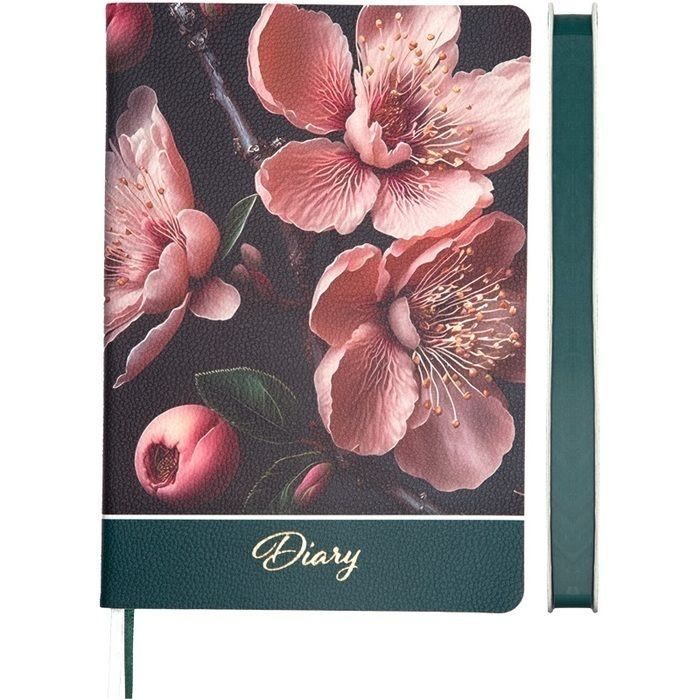 Ежедневник недатированный "deVENTE. Greta" A5 (145 ммx205 мм) 272 стр, белая бумага 70 г/м² с зеленым срезом, печать в 2 краски, мягкая обложка из искусственной кожи, цветная печать, тиснение фольгой, перфорация, закругленные уголки, 2 ляссе, в термоусадочной пленке, зеленый с цветами