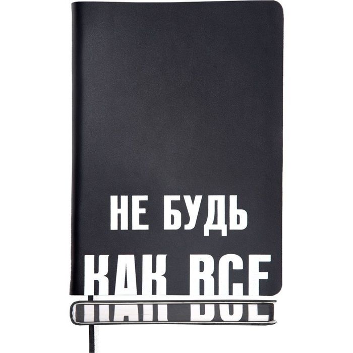 Ежедневник недатированный "deVENTE. Note. Не будь как все" A5 (145 ммx205 мм) 272 стр, белая бумага 70 г/м² с цветным срезом, печать в 2 краски, мягкая обложка из искусственной кожи, шелкография, черный форзац, перфорация, закругленные уголки, 2 ляссе, в термоусадочной пленке, черный.